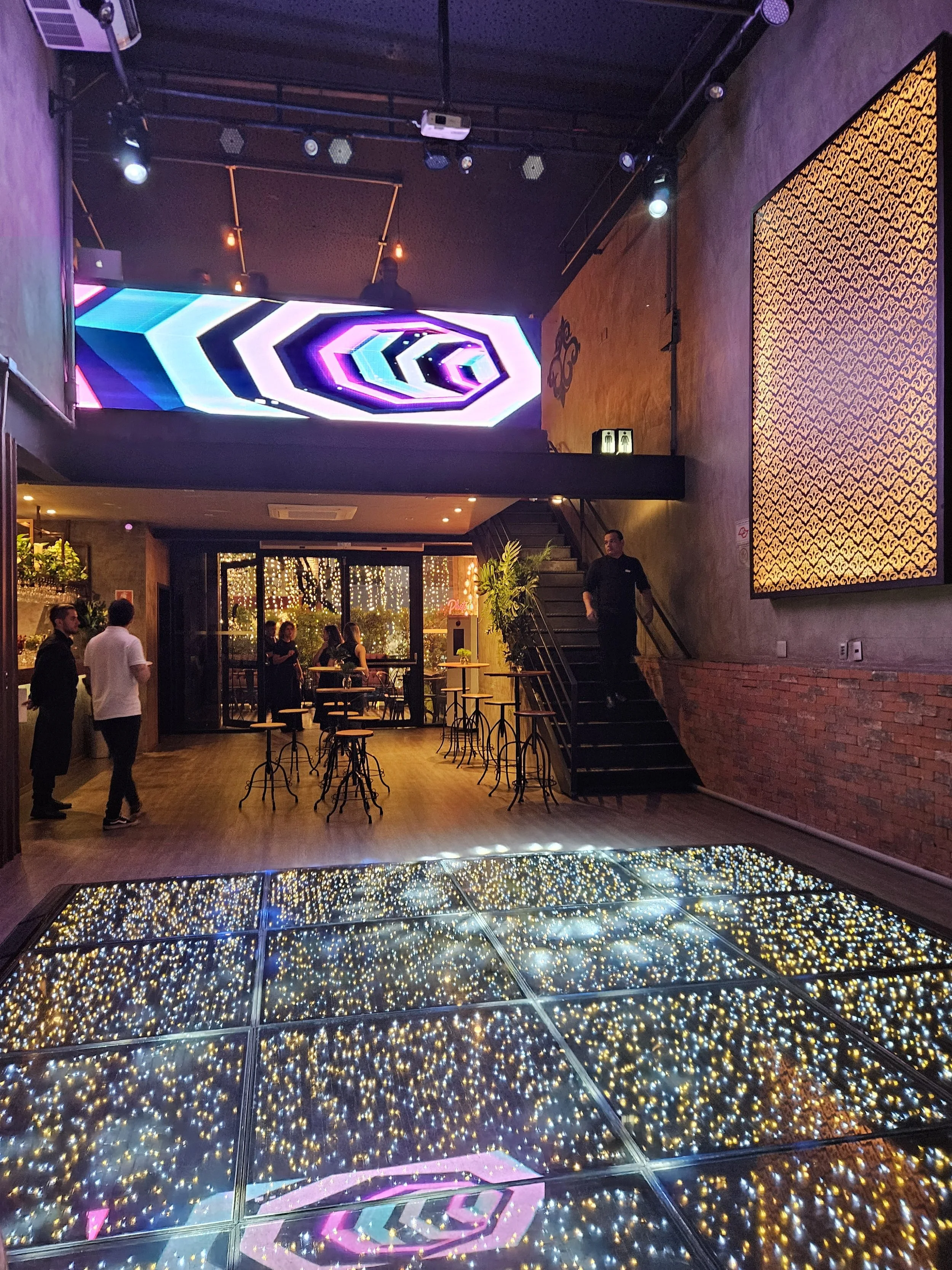 O salão principal do Studio190 tem acústica perfeita para pocket shows. Uma atmosfera intimista e sofisticada para relacionamento com clientes. Bandas de música ao vivo e desfiles de moda se encaixam perfeitamente no ambiente.